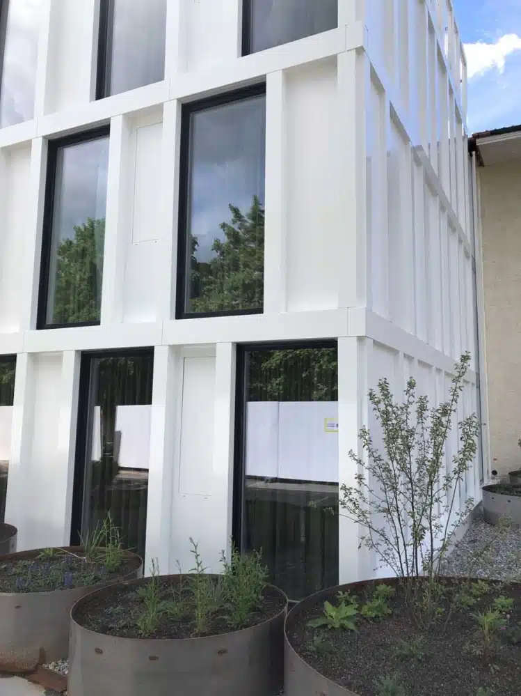 Kurzbeschrieb: Fassadenbau mit Holz-Metall-Fenster